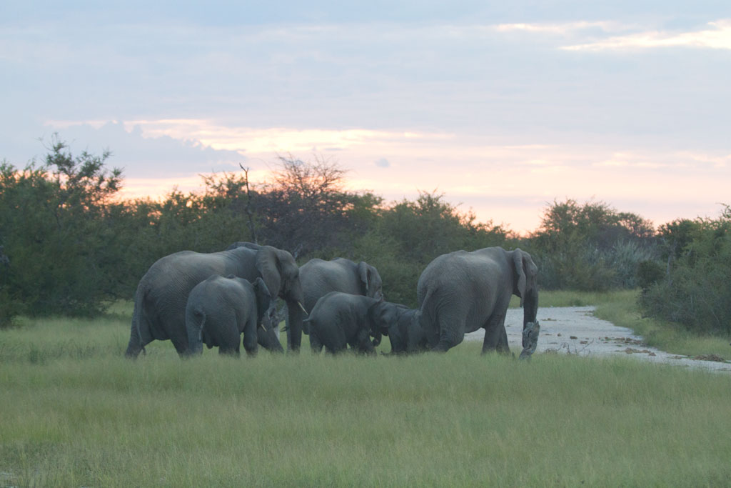 17:30 Uhr schließt das Tor am Nationalpark. 5 Minuten nach halb waren wir immer noch drin und damit beschäftigt herauszufahren. Plötzlich hielt der Wagen, setzte zurück, und bog in einen Nebenweg ein. Der Grund war dann schnell zu sehen: Eine Elefantenherde ging ihres Wegs. Sehr beeindruckend, sogar ein paar Jungtiere waren dabei.