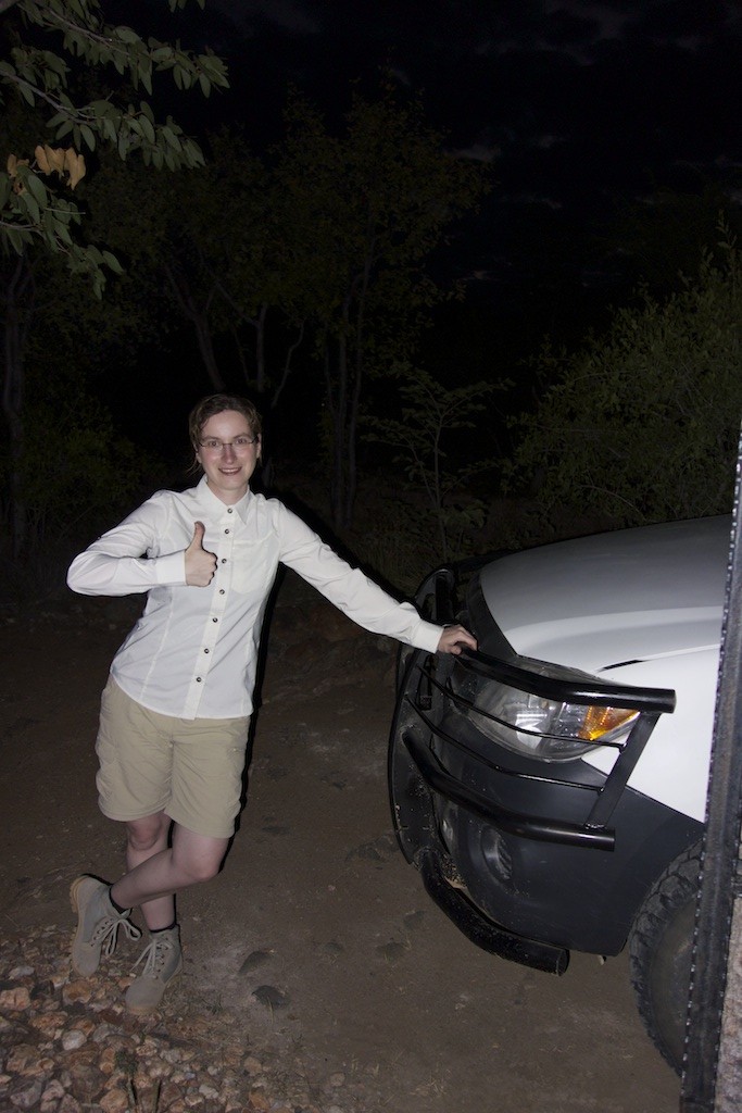 Wir kommen zurück, von unserer abendlichen Ausfahrt, als unser Blick auf die nicht mehr ganz so hellen Rückleuchten unseres Wagens fällt. Oh nein, mal wieder das Licht angelassen… Kurz den Fernbedienungsknopf am Autoschlüssel gedrückt und schon war klar – die Batterie ist schon sehr schwach. Selbst die sonst so nervige Hupe beim öffnen des Autos will nicht mehr lärmen. Also noch schnell nach Hilfe an der Rezeption gerufen und schon kam unser Guide mit seinem Jeep und gab uns Starthilfe. Ein Glück, die Kiste ging wieder an. Wir liessen sie noch eine Weile im Stand laufen und ich hätte sie noch länger laufen lassen, allerdings kamen schon Rufe aus den Nachbarzelten, das doch bitte das Auto mal stille sein soll…